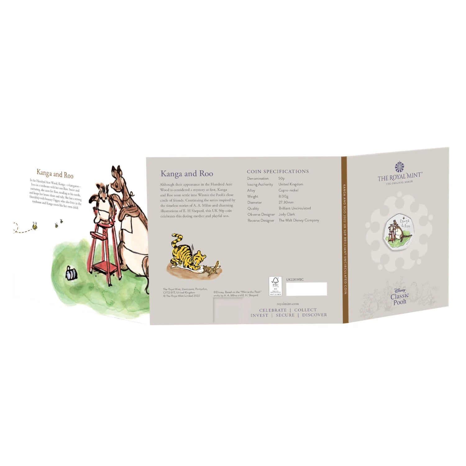 Own the second coin in the 2022 Winnie the Pooh 50p Collection, featuring the much-loved kangaroo mother and son duo —Kanga & Roo