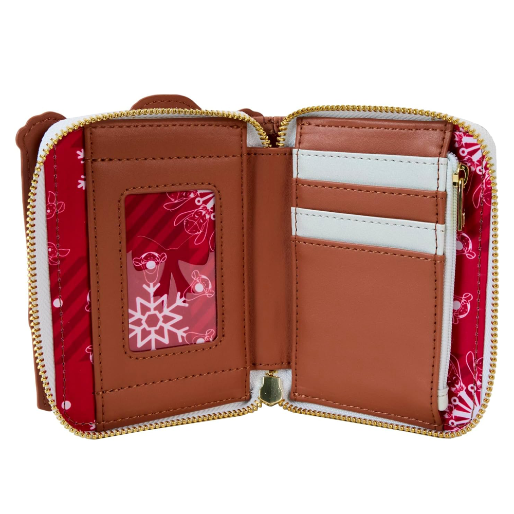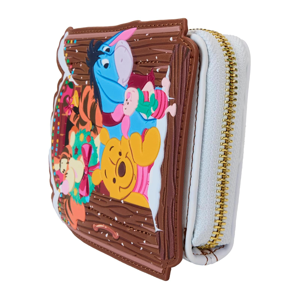 Hundred Acre Wood is looking festive! Join in the fun with our Disney’s Winnie the Pooh and Friends wallet. A warm welcome greets you at the door of Winnie the Pooh’s tree. Applique details reveal Winnie the Pooh, along with Disney’s Piglet, Eeyore, and Tigger with a wreath around his neck. Glow-in-the-dark details allow for a festive display, as colorful lights frame the scene at the top. On the back, Piglet makes a fun encore appearance as a print inside a jar of honey. Make the season even merrier and bright with this sweet accessory.