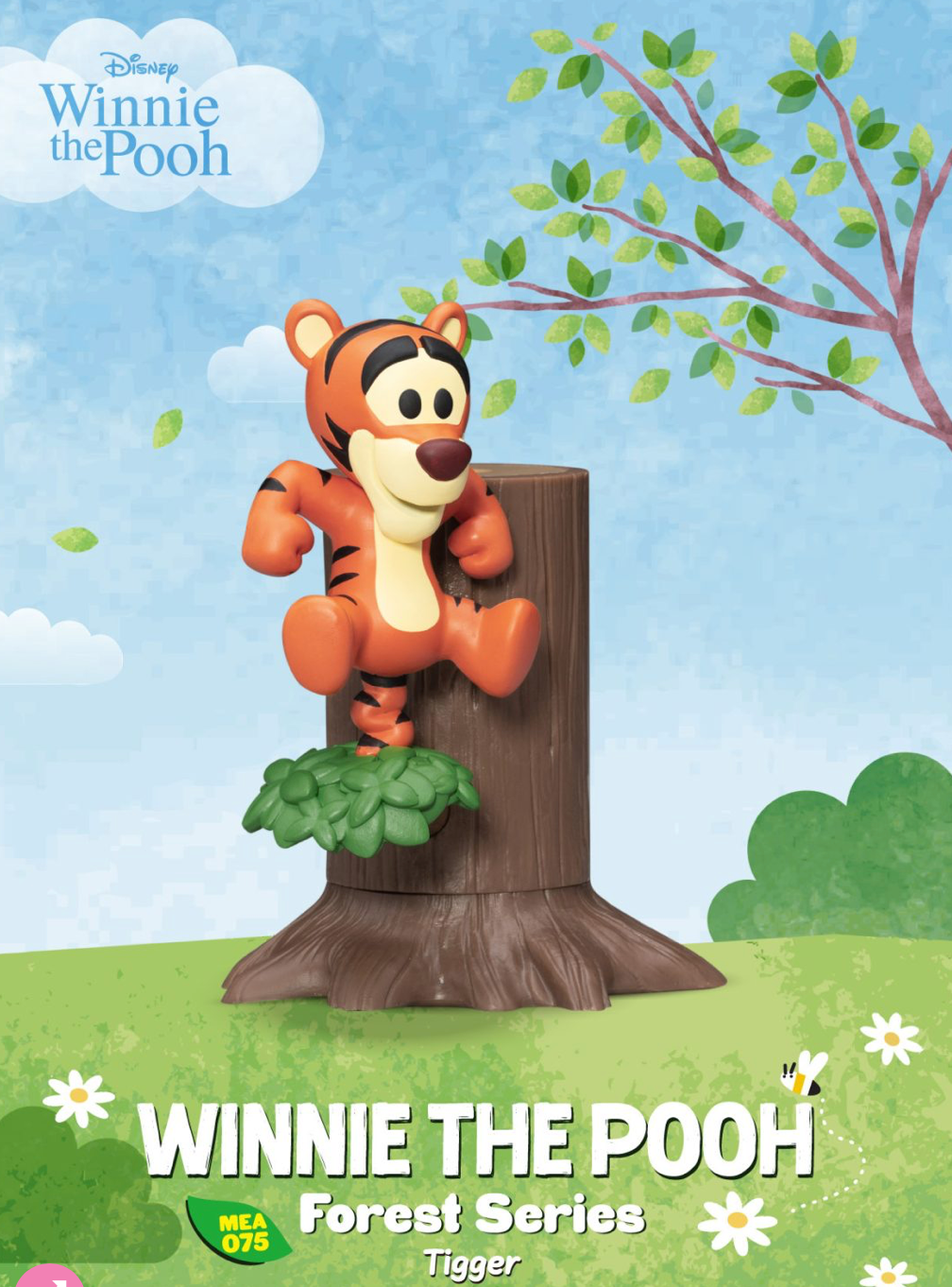 This series also introduces two versions of Winnie the Pooh: Pooh eating honey and Pooh enjoying a swing. There are six characters in total, each with a large tree trunk.