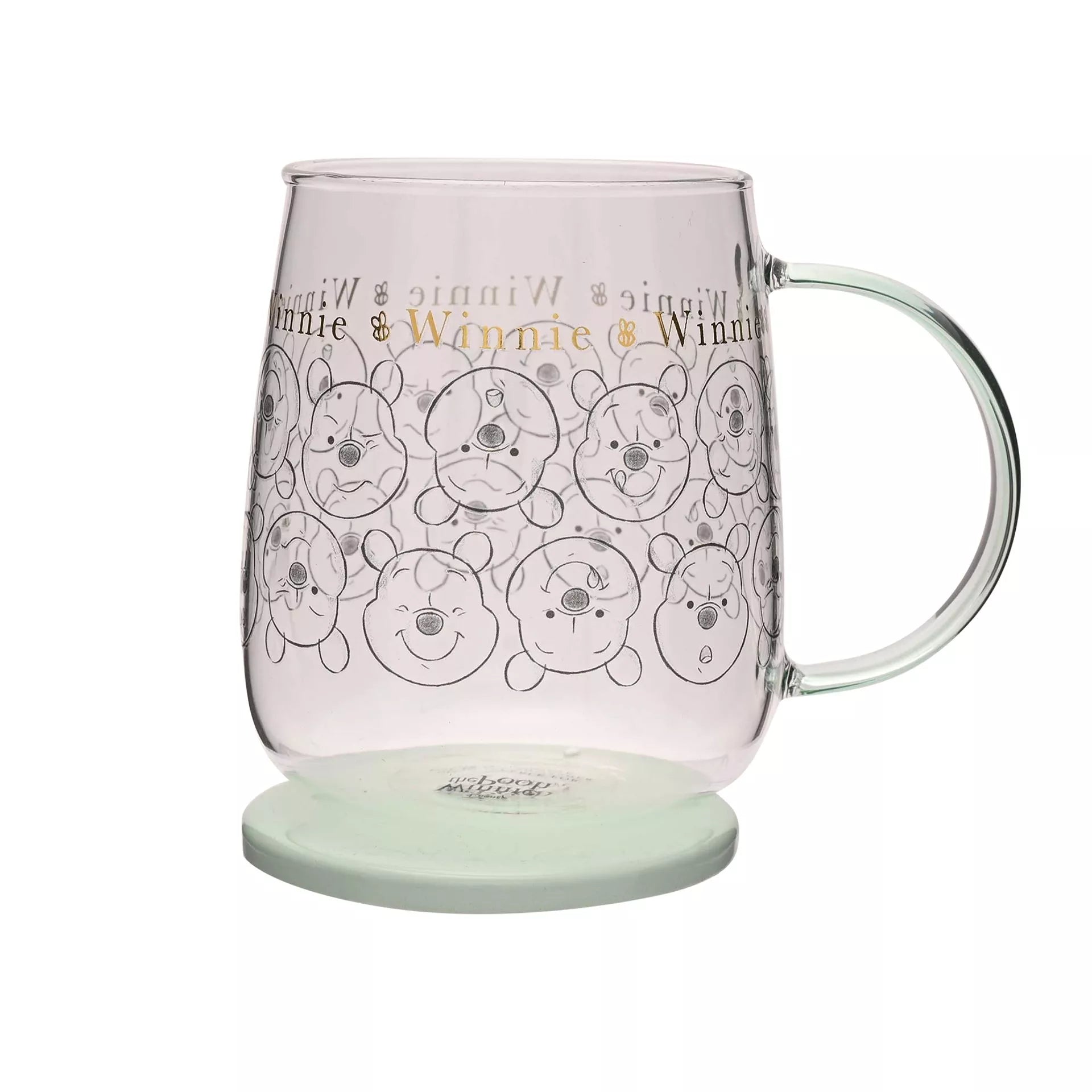 Rediscover the magic of Disney with the Disney Classic Collectable Glass Mug With Lid, featuring a delightful Winnie the Pooh design. Immersing yourself in nostalgia with every sip. It's an enchanting gift or keepsake for Disney enthusiasts of all ages. A fun design with gold details featuring Pooh's face with a variety of facial expression, it's sure to bring a smile to your face.