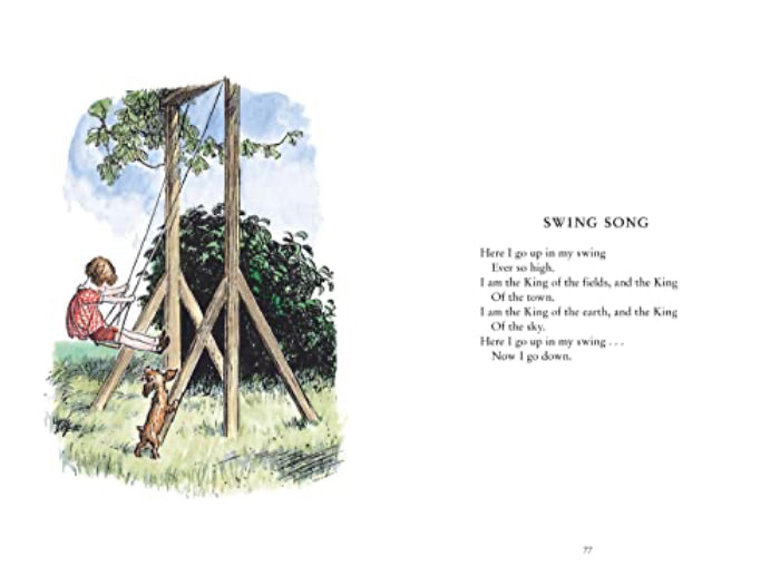 This work includes poems for children which feature Pooh helping Christopher Robin with his schoolwork (if helping is the word). It is an evocation of childhood, through the eyes of the six-year-old Robin.