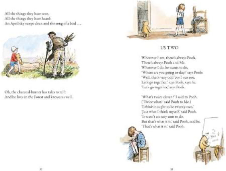 Milne and Shepard had a unique working relationship for their time, in that they closely collaborated on the design of the storybooks and poetry. This joint approach to laying out the words and illustrations was clearly the perfect partnership; Shepard entirely captured the charm of Pooh’s world, created by Milne, resulting in the gorgeous books we all know and love.
