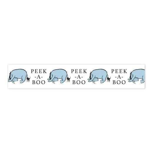 Add a touch of classic charm to your papercrafts with the Eeyore Washi Tape from the Winnie The Pooh Baby Collection by Echo Park. This adorable washi tape features a repeating design of Eeyore paired with the phrase "Peek-A-Boo," creating a playful and sweet accent for your scrapbooking, card making, or journaling projects. At 30 feet long, this versatile tape offers plenty of material for all your creative endeavors. Use it to embellish pages, seal envelopes, or add playful borders to your baby-themed crafts. Celebrate creativity with this delightful addition to your collection.