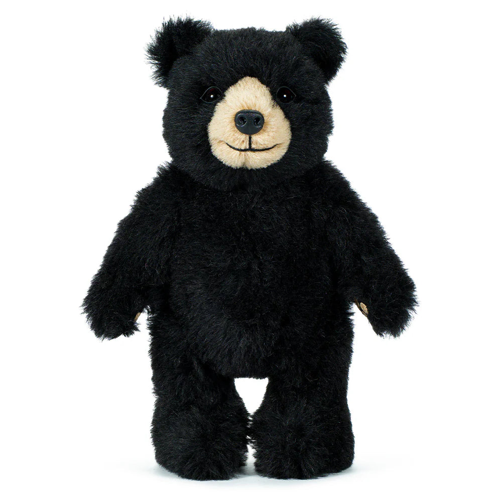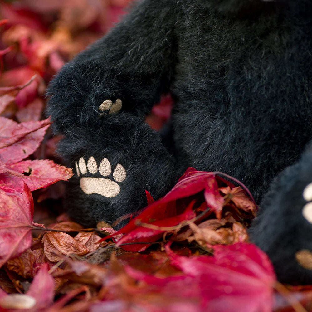 Lovingly handmade from the softest jet-black alpaca plush, paired with a fawn-coloured muzzle, Winnipeg Bear features embroidered detailing on her paws, captivating life-like eyes, and a cheerful smile.